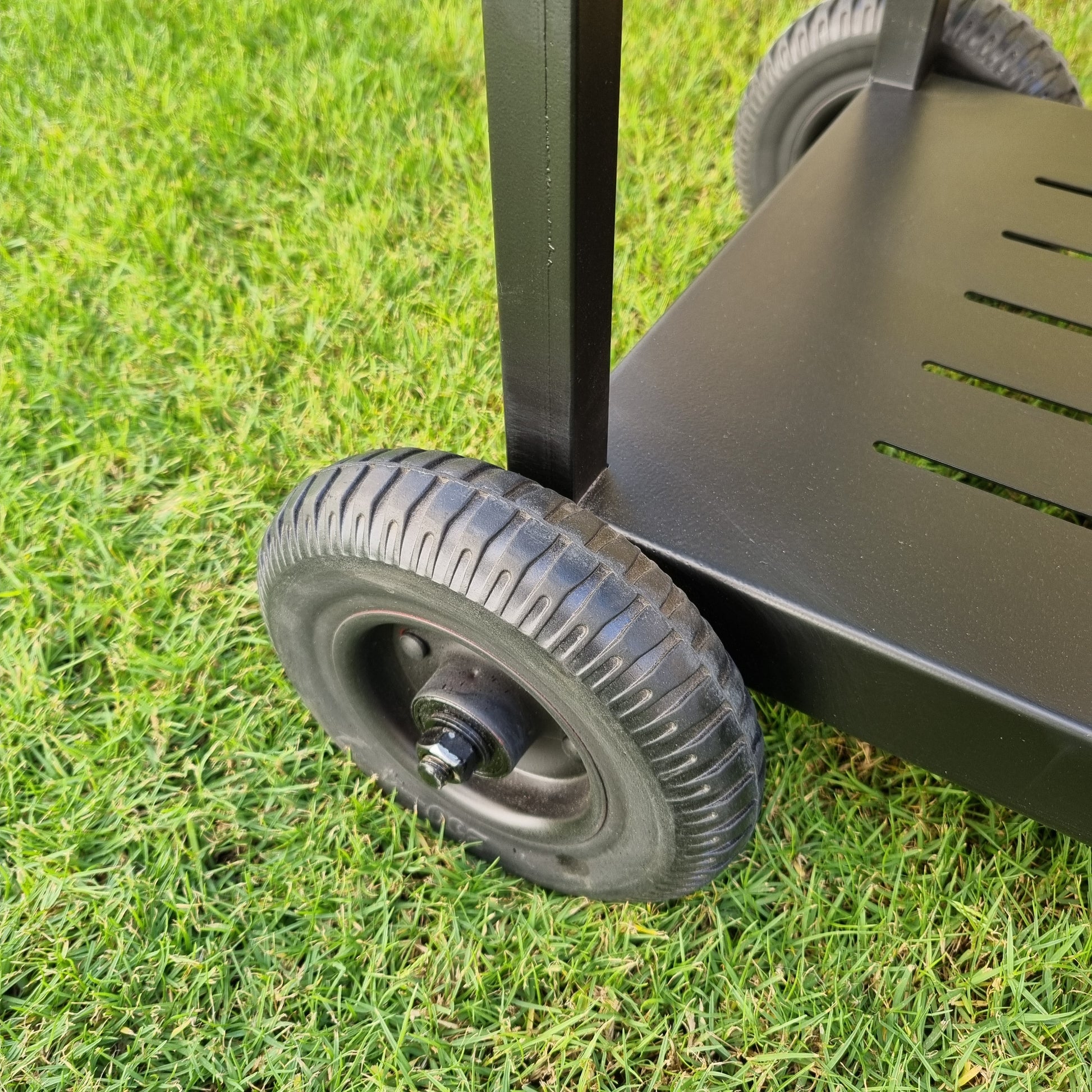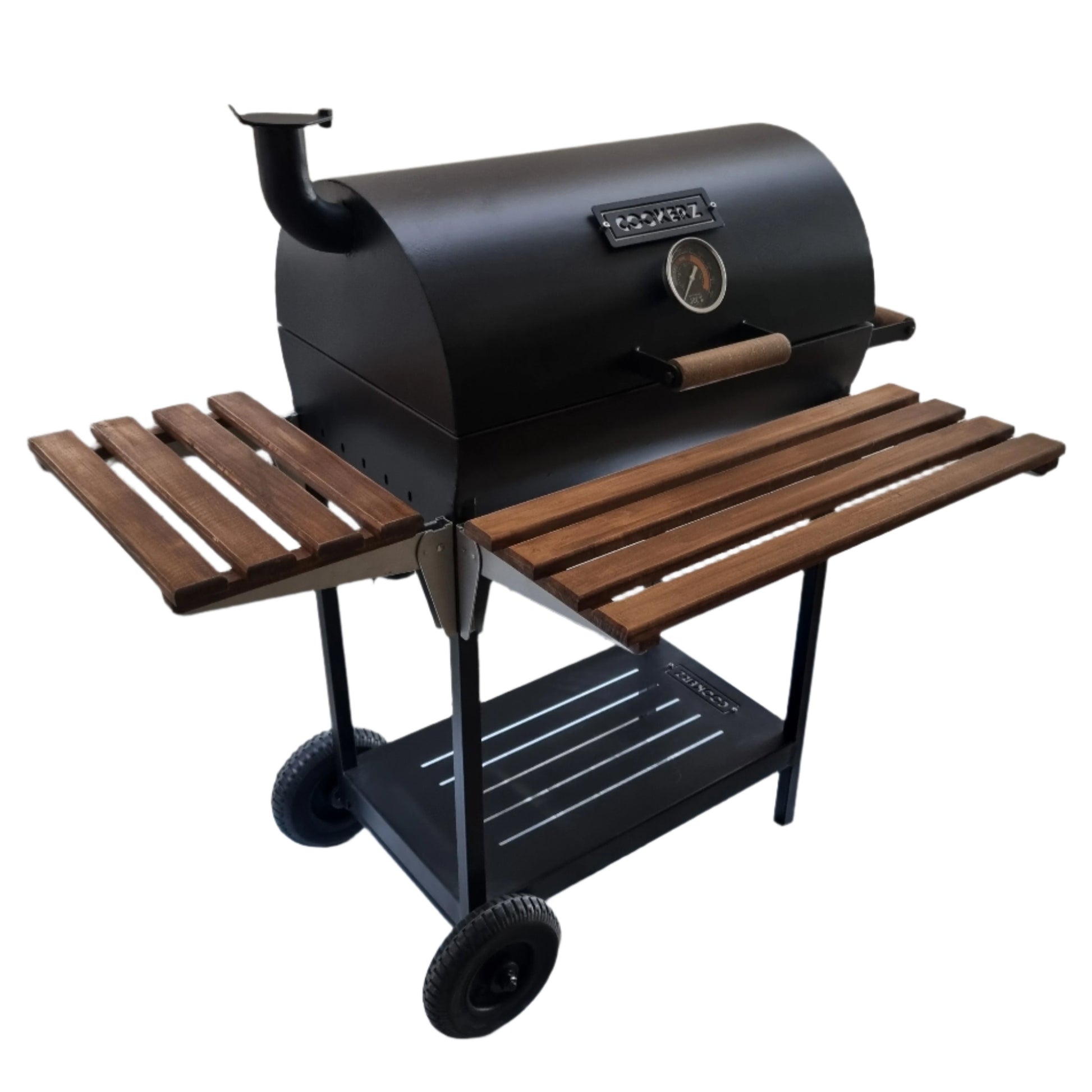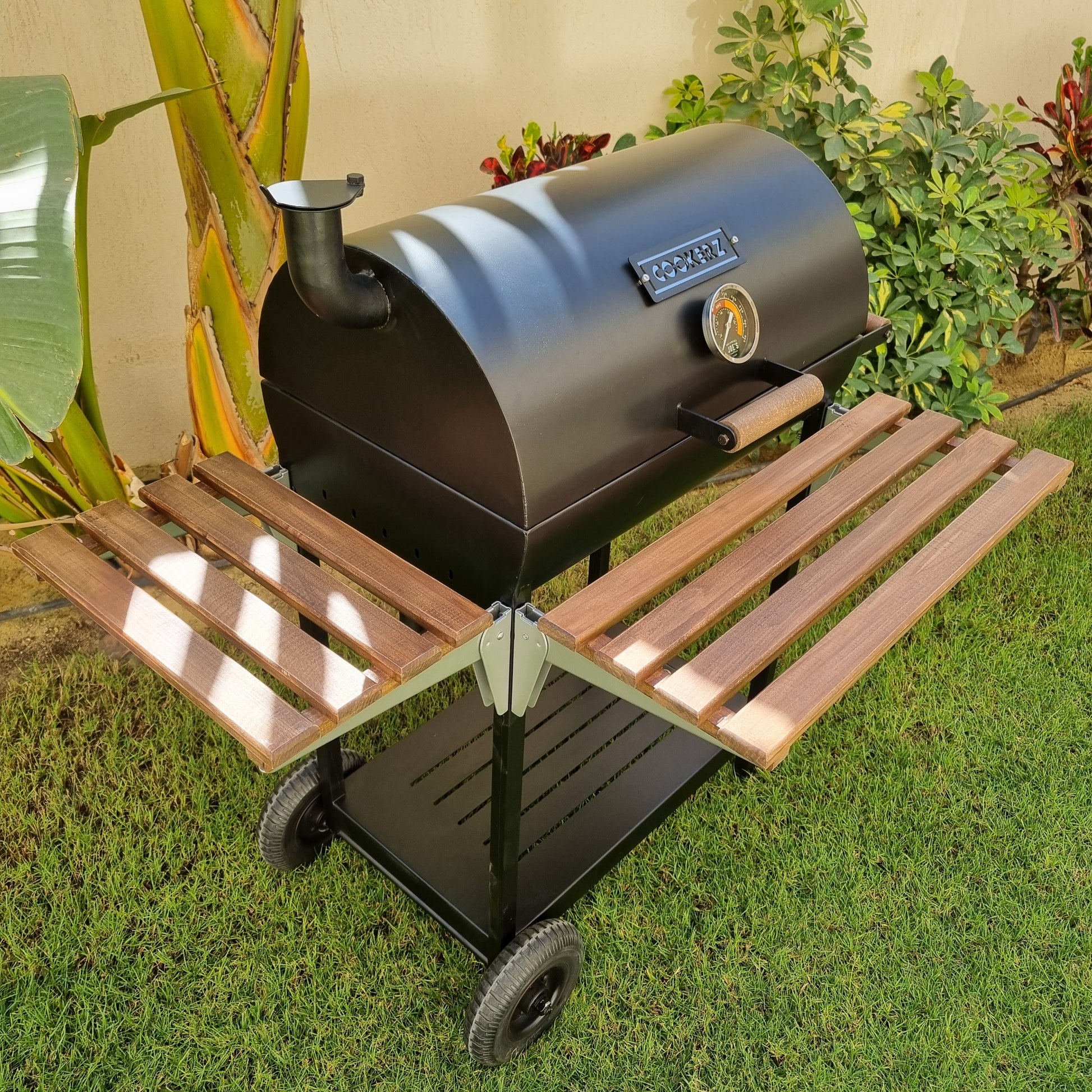 Classic Grill with charcoal drawer, 2 extendable side table & large wheels for easier transportation.