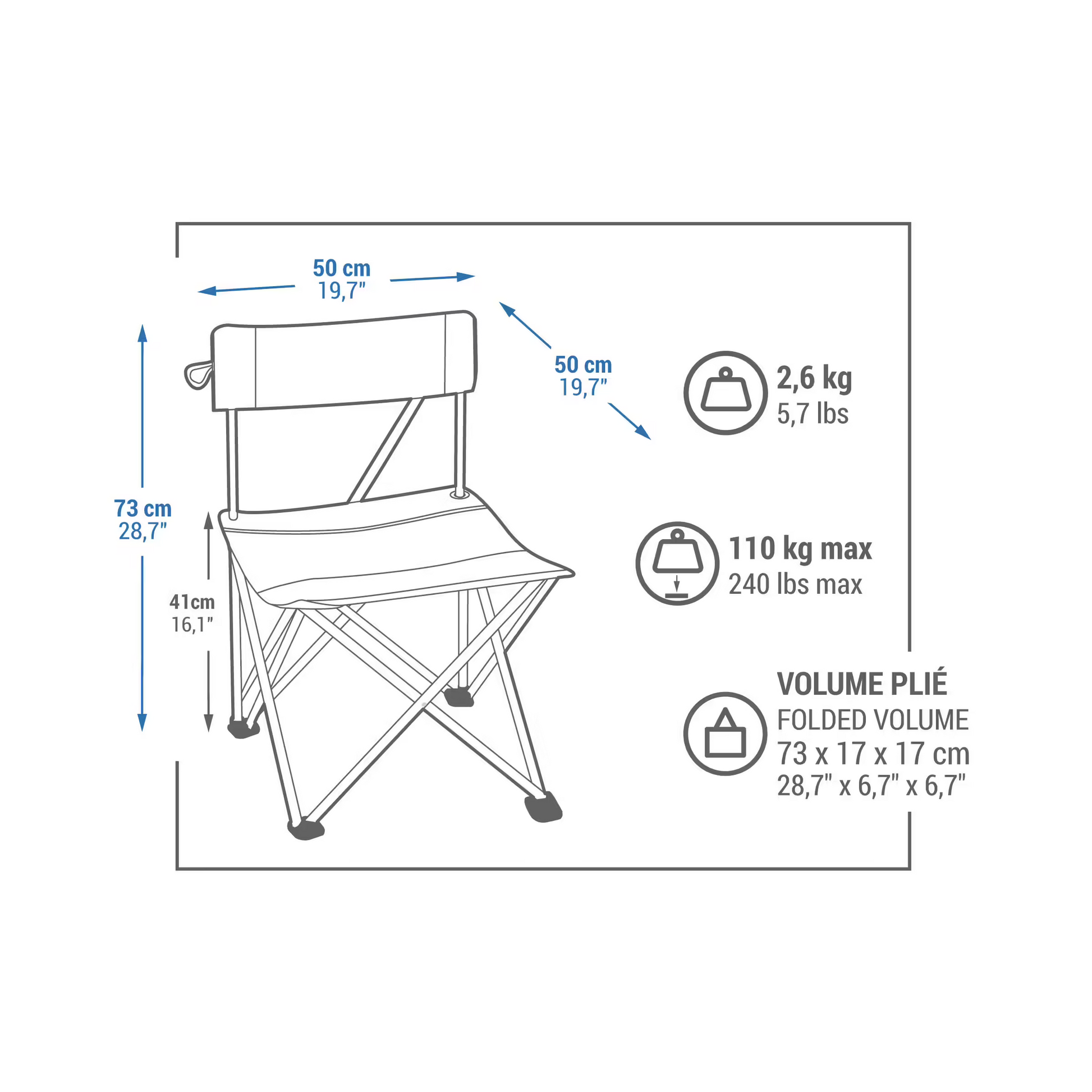 A compact chair suitable for using with our camping tables. Its 41 cm-high seat guarantees you optimal comfort.