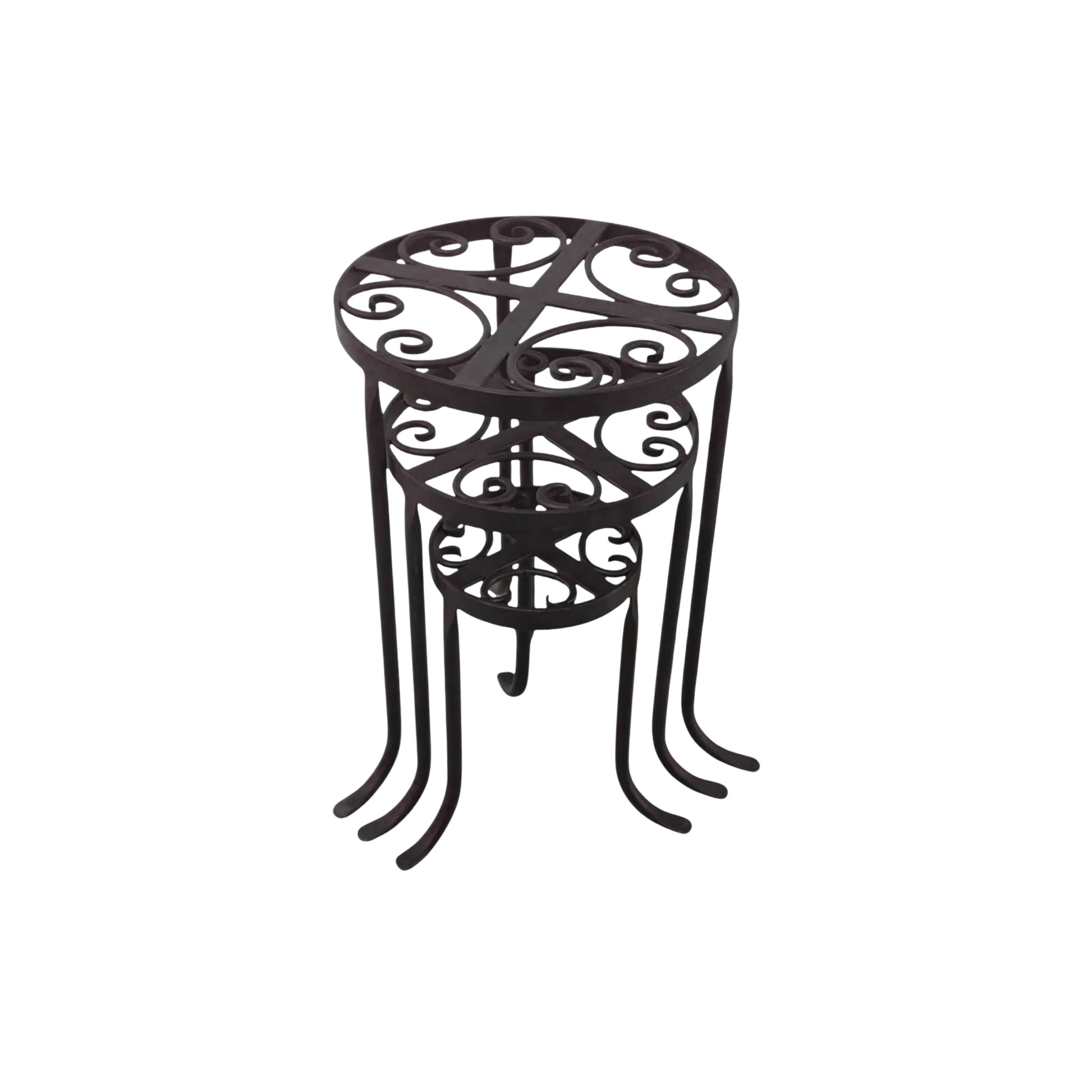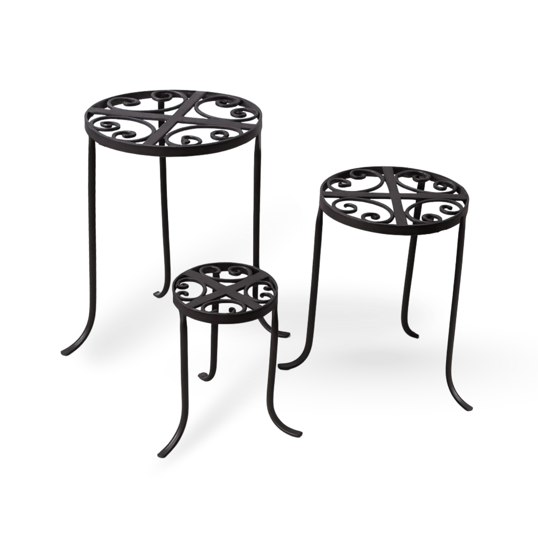 Use them together for a tiered botanical display, or place them around your home to echo one timeless design in different ways. All are made from solid wrought iron with graceful legs and scrollwork tops.
