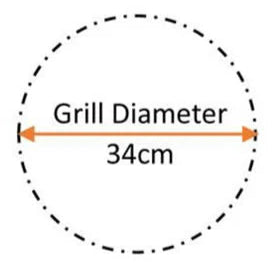 Assembled dimensions: (H) 98cm x (W) 37cm, Grill Diameter: 340mm
