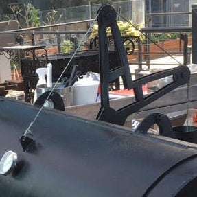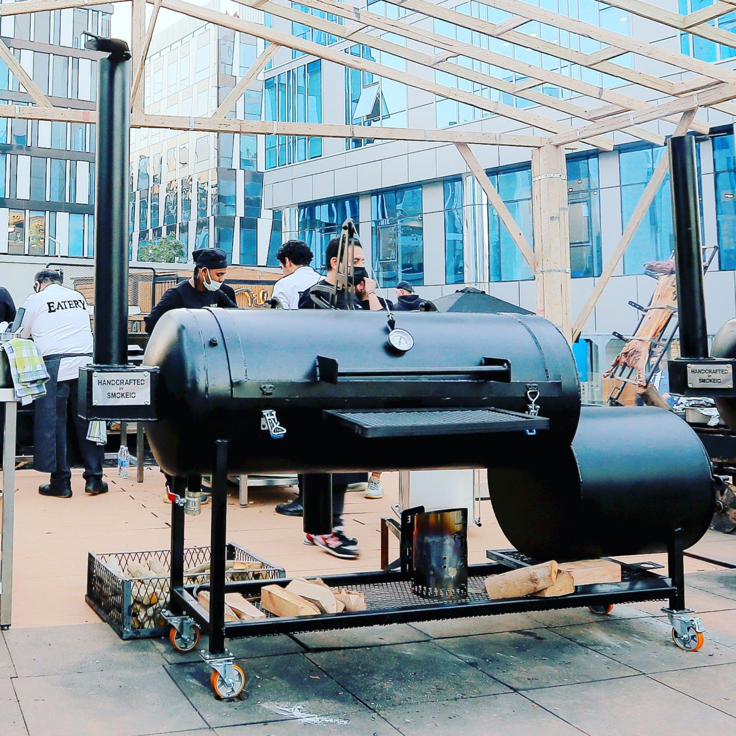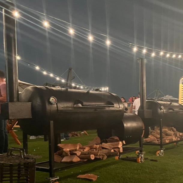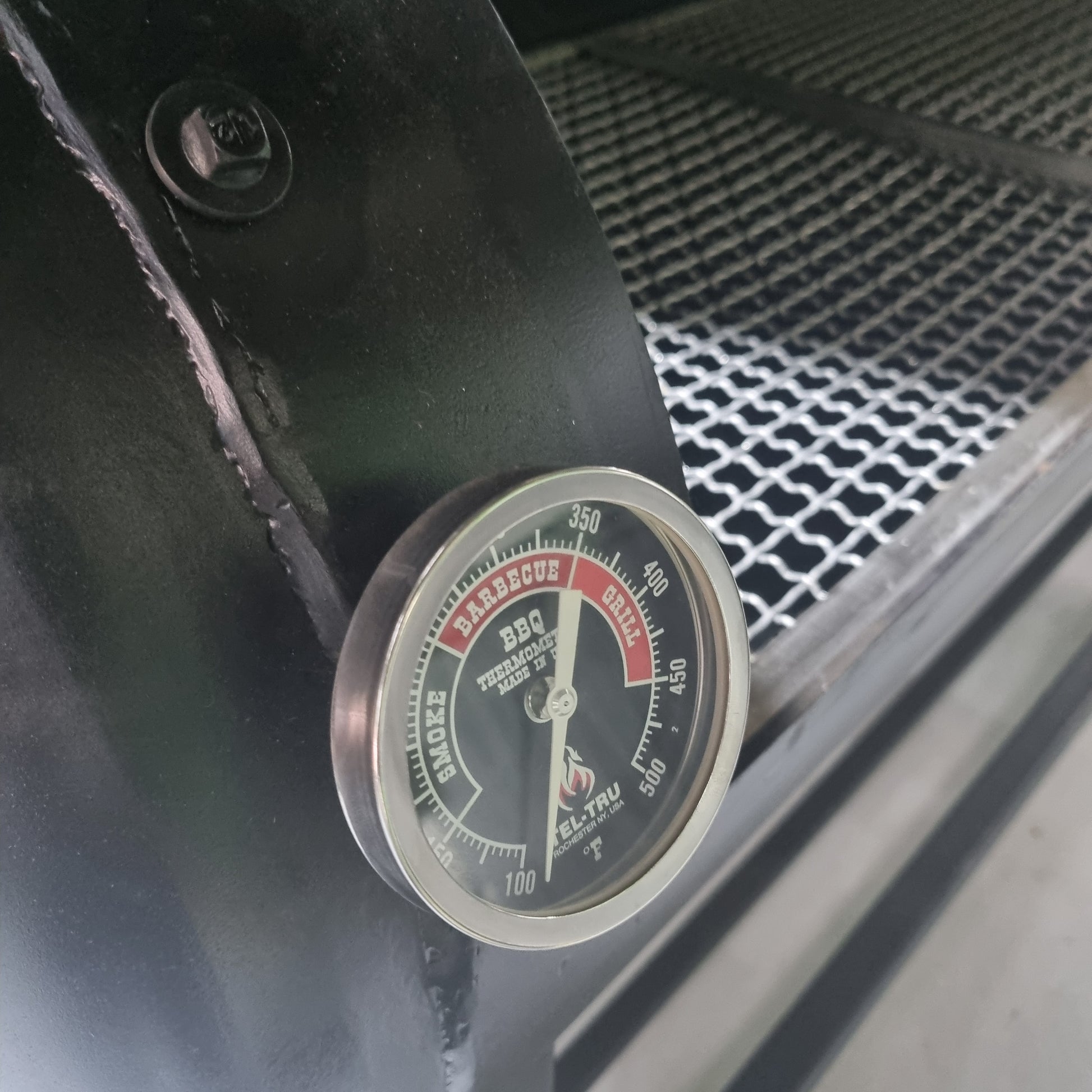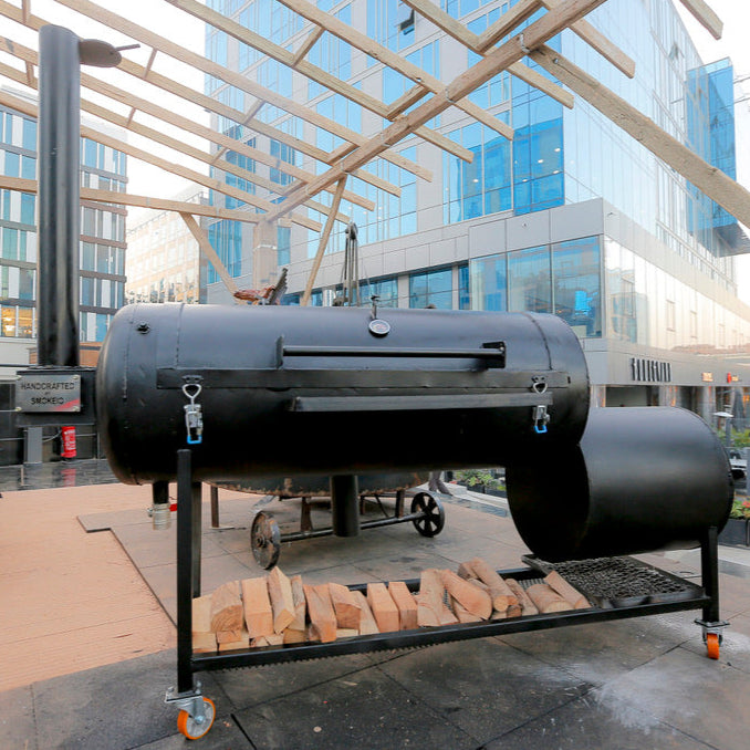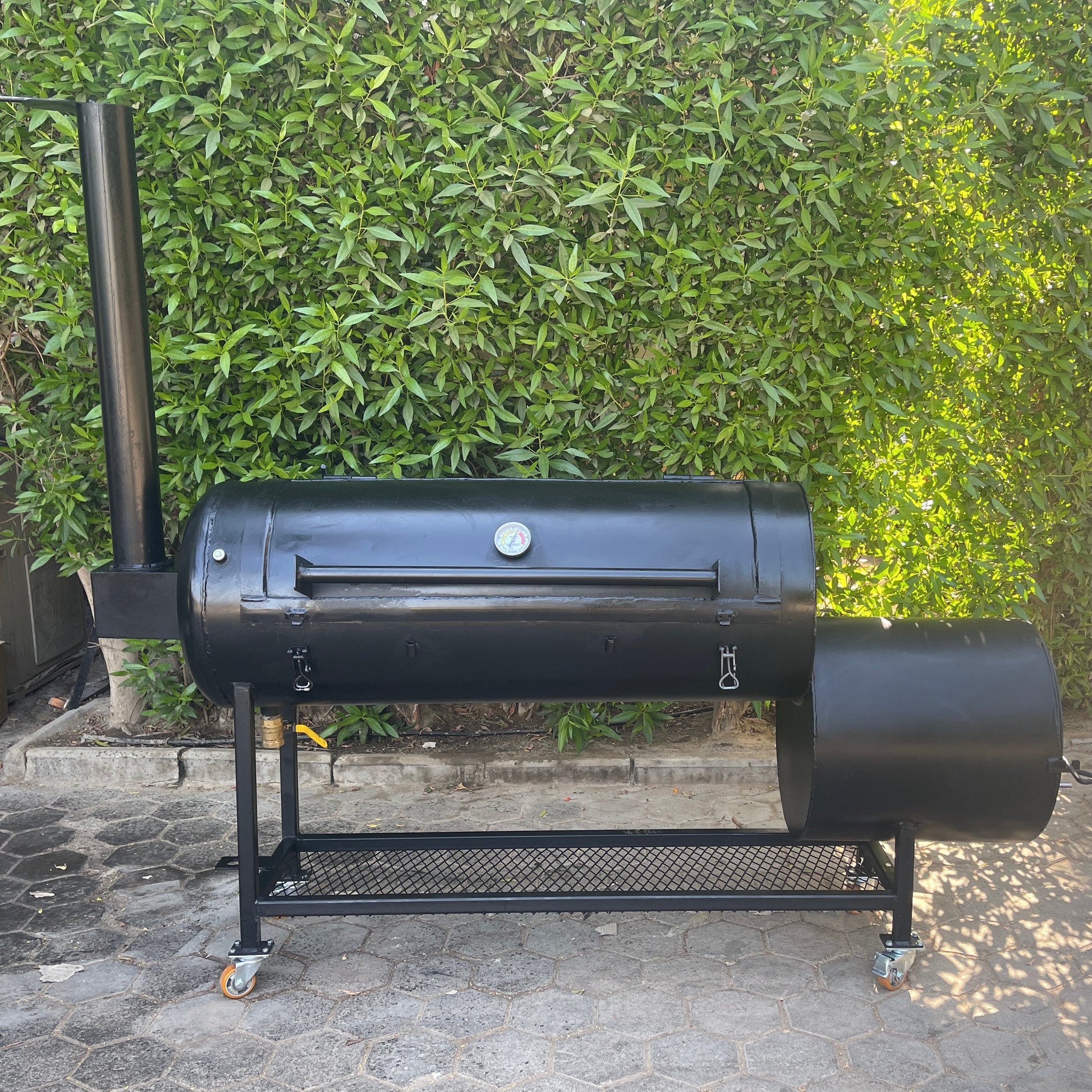 - Smoker overall length (cooking chamber + firebox): 230 cm