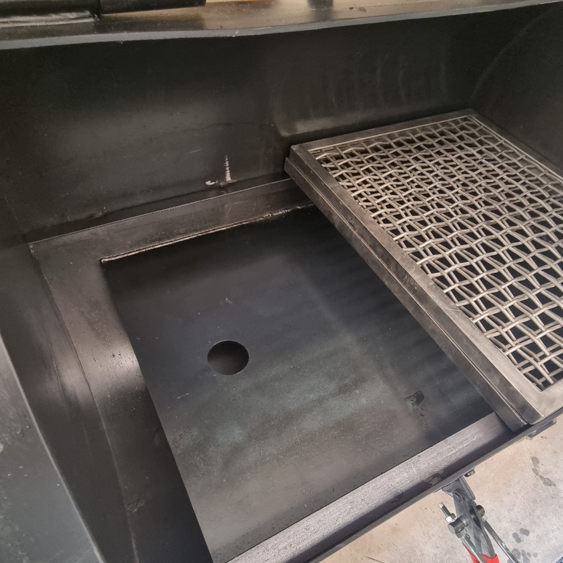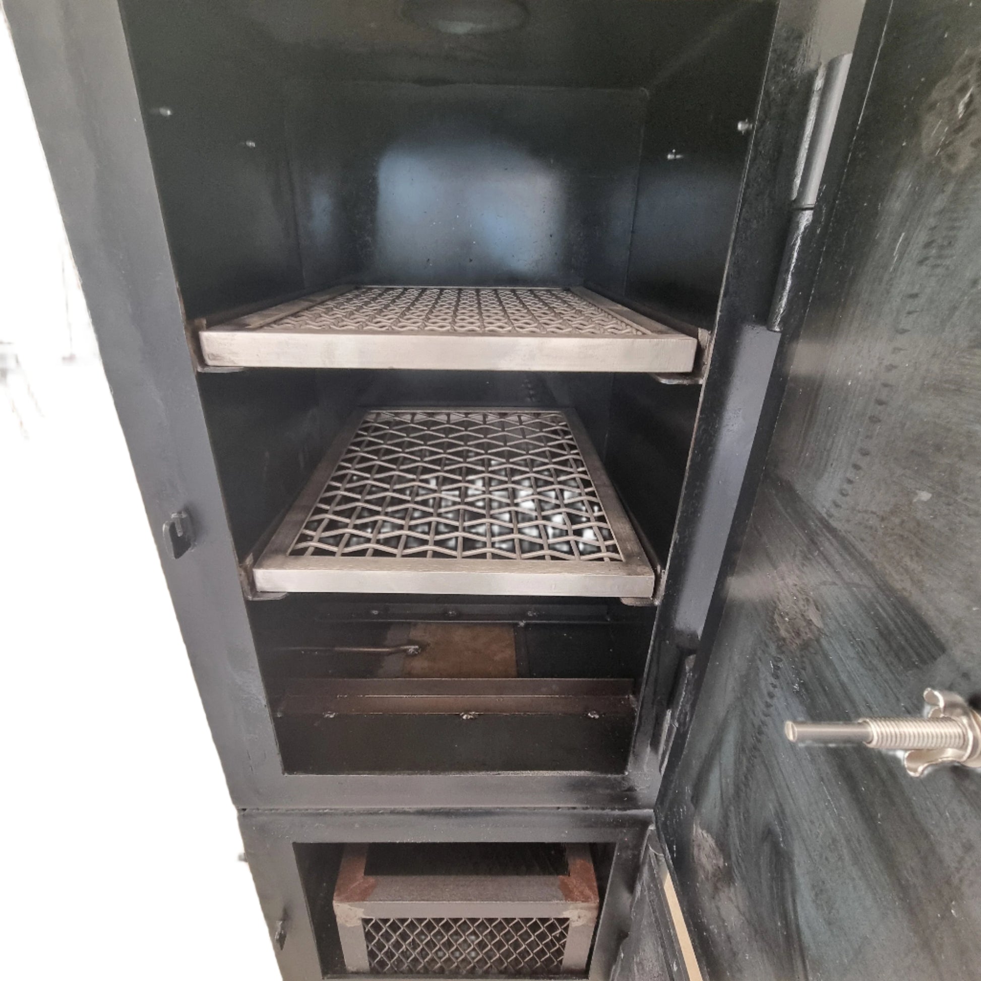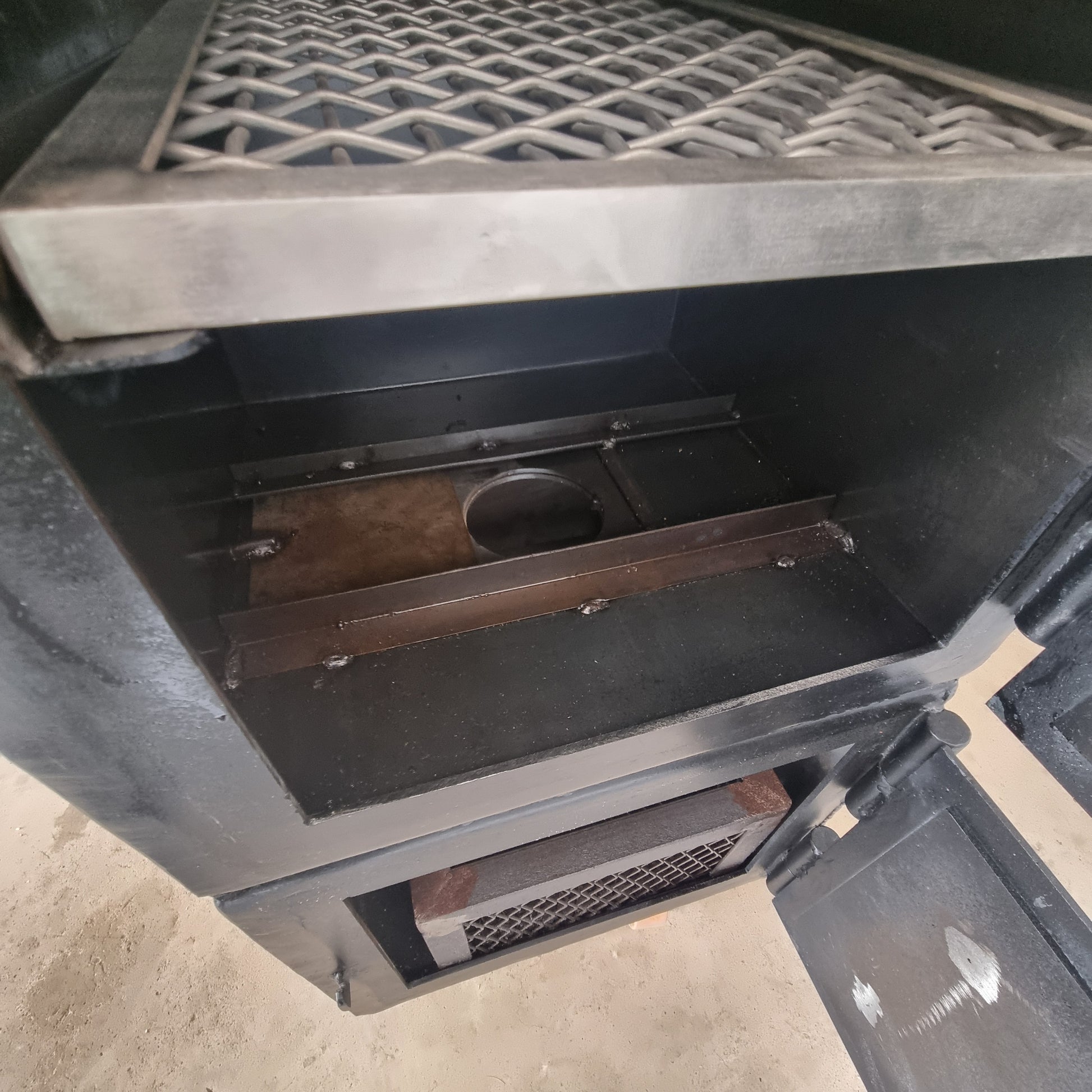Firebox Features – Includes a charcoal box for efficient fuel handling.