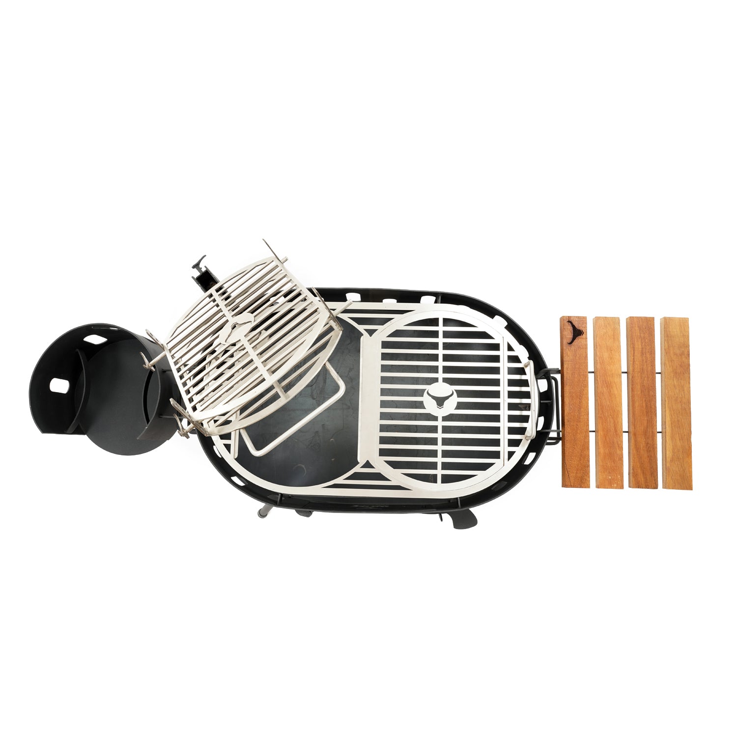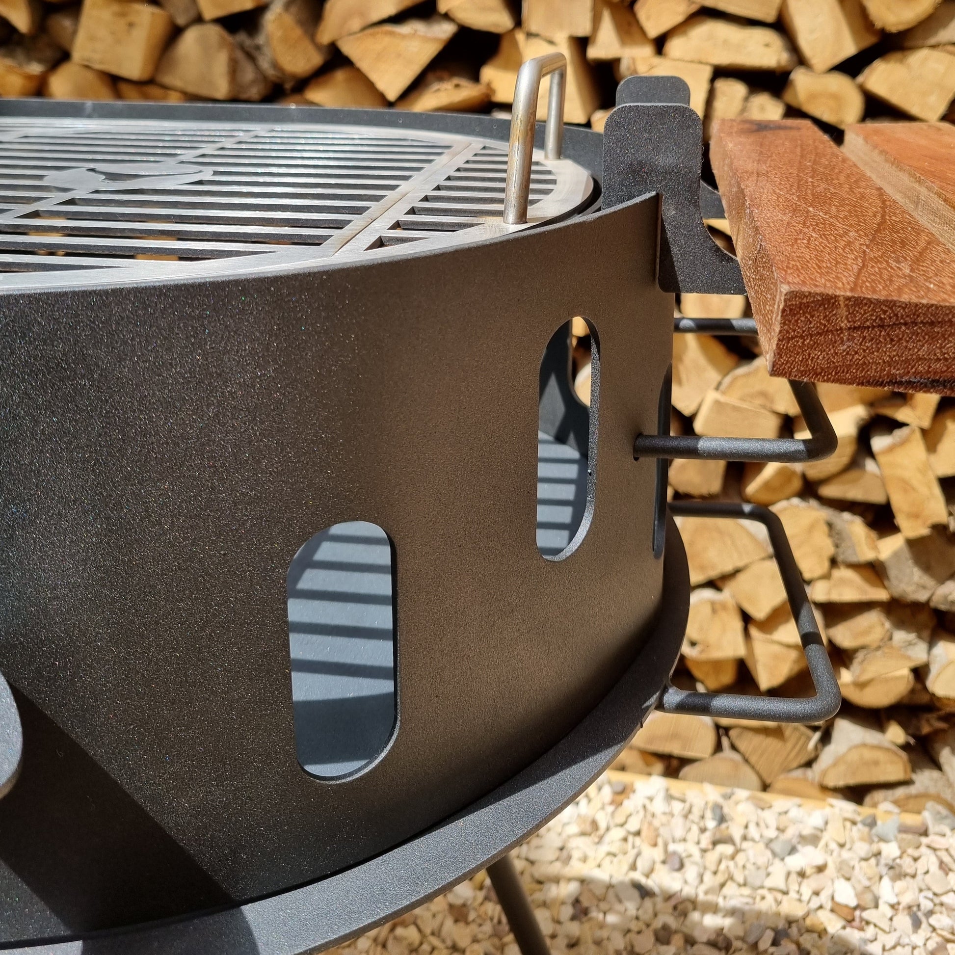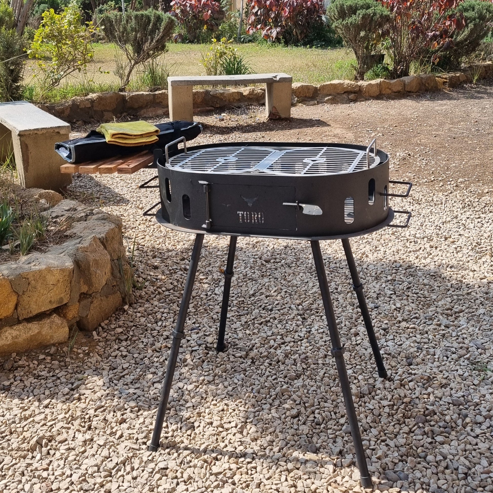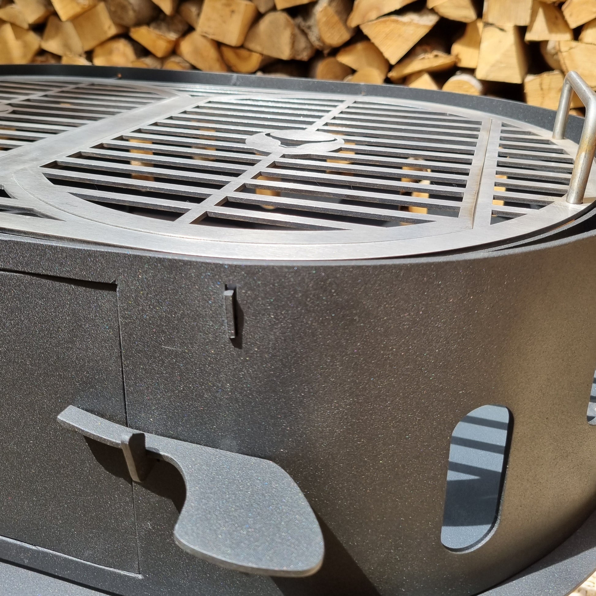 The grill is made of heavy duty 3 mm steel with high-temperature resistant paint.