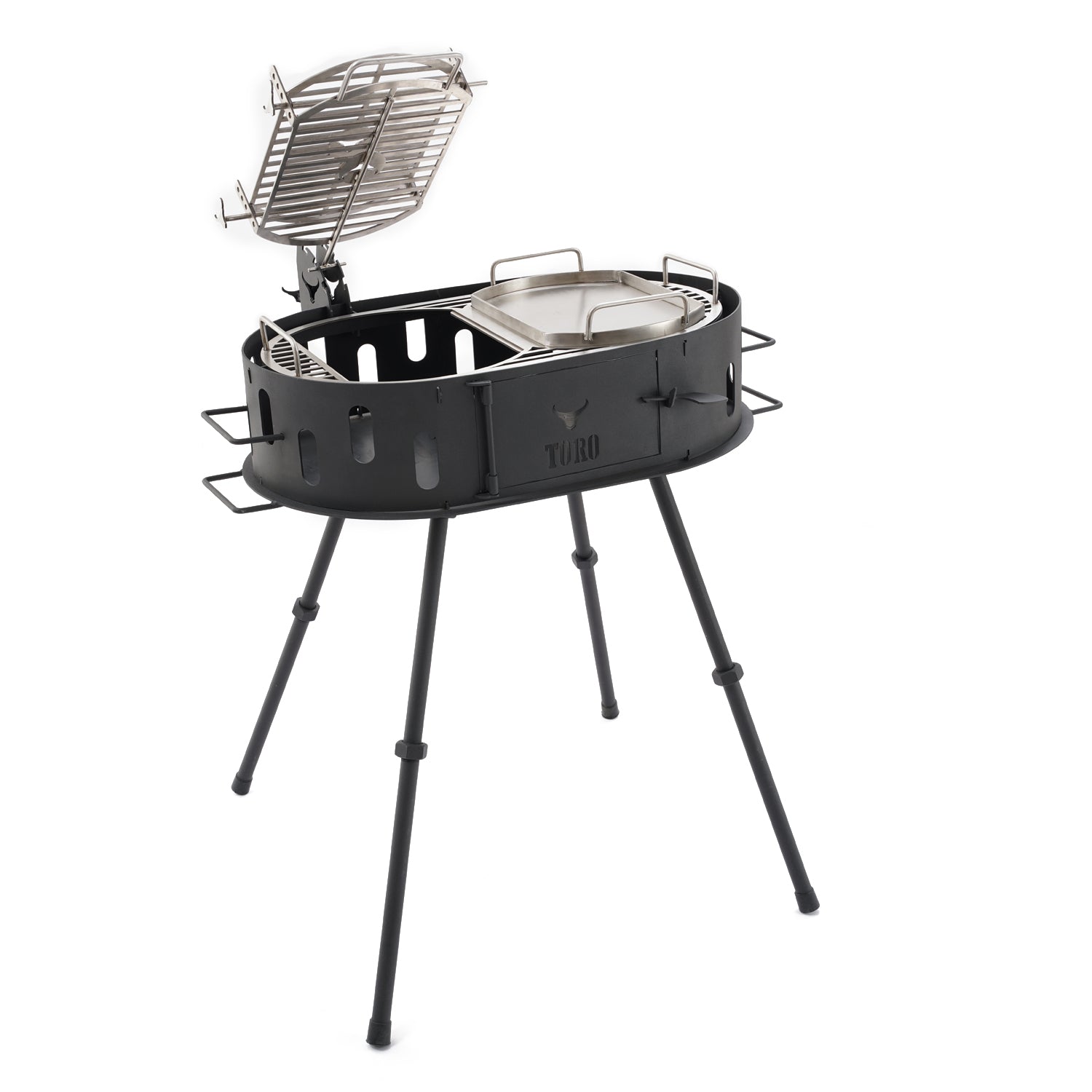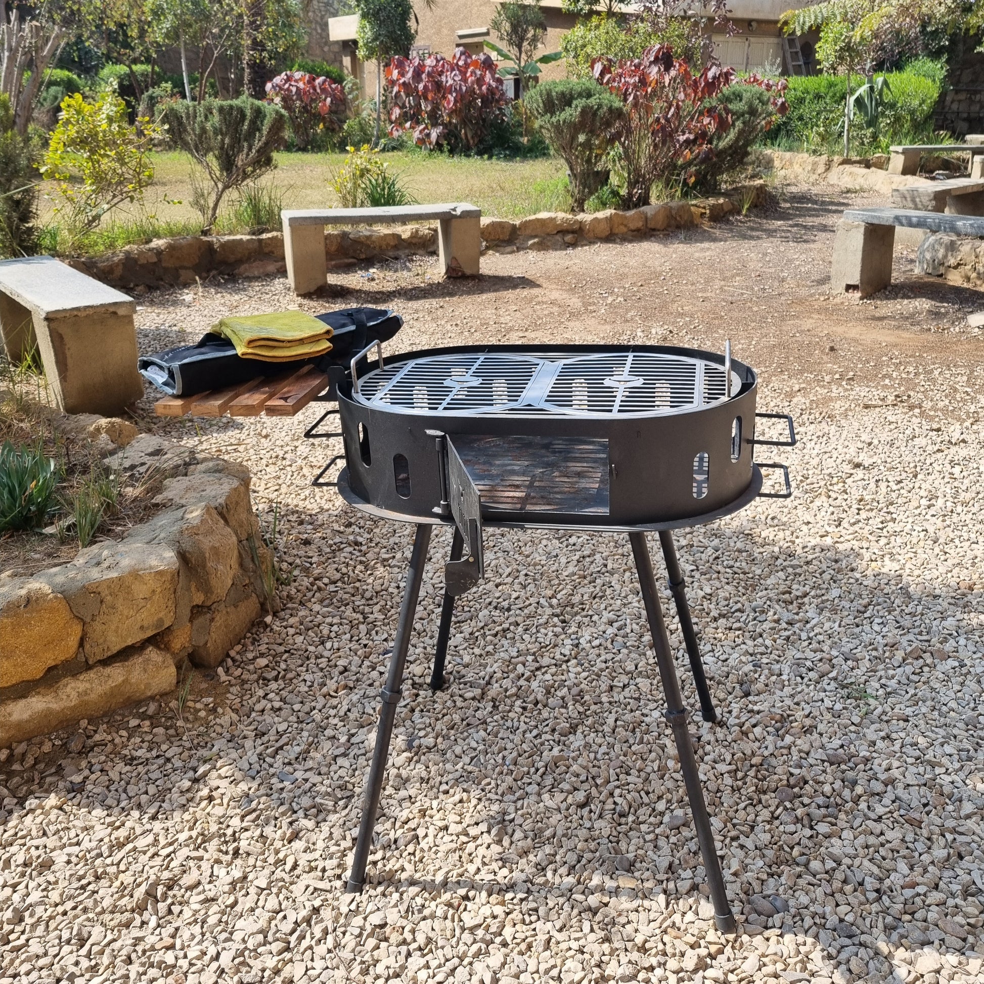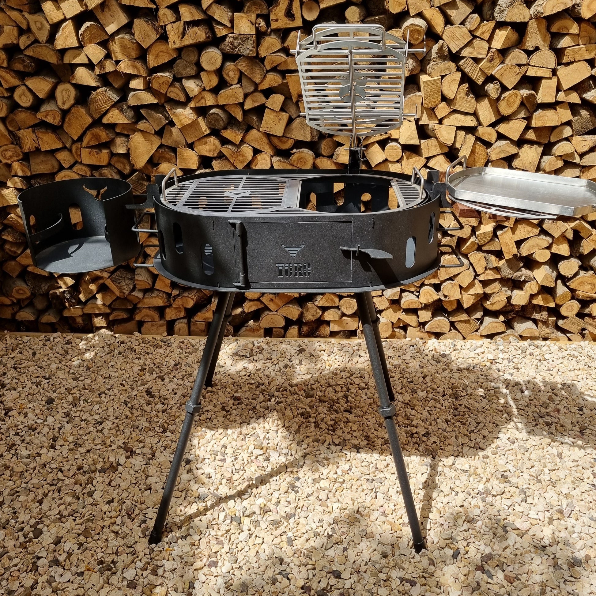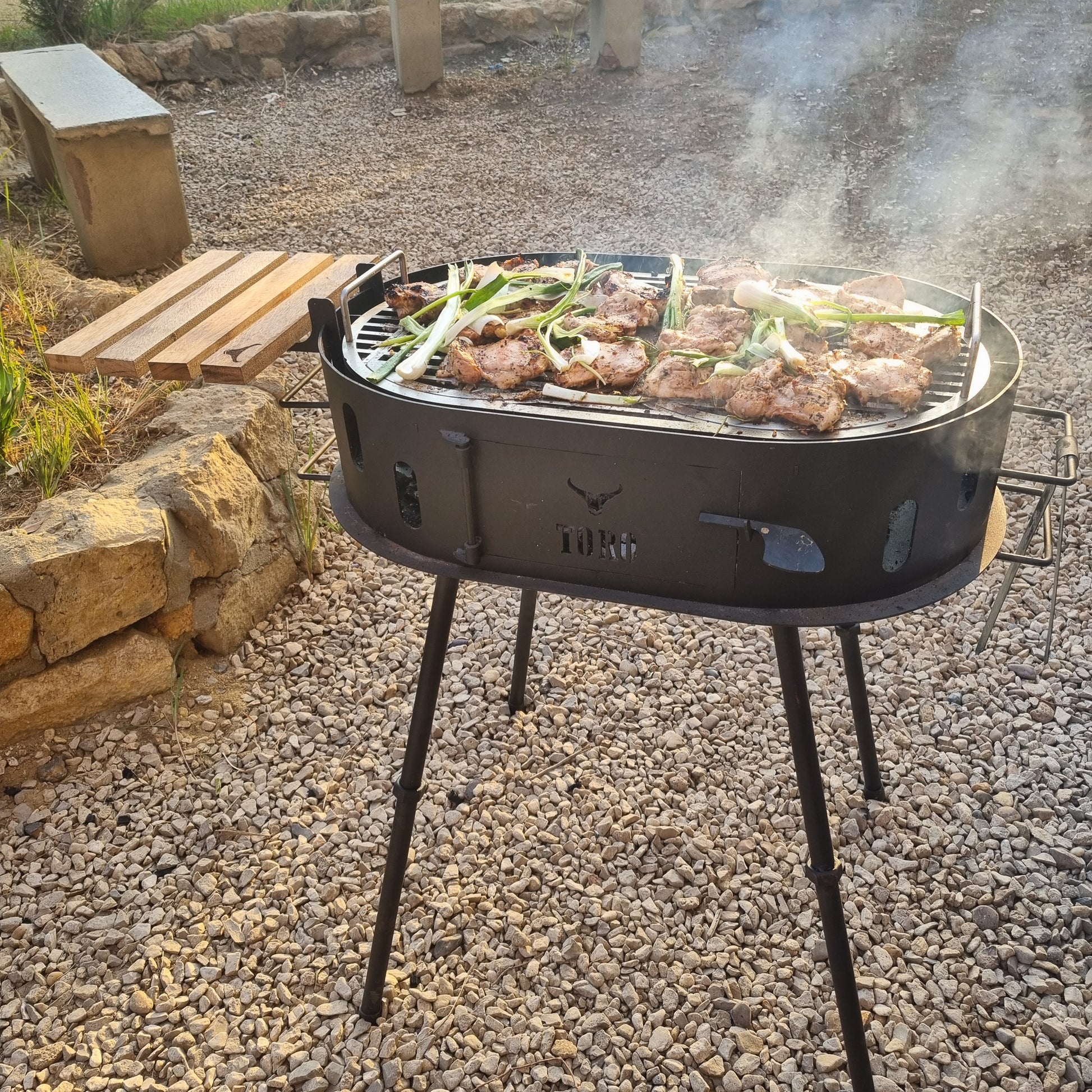 The grill is made of heavy duty 3 mm steel with high-temperature resistant paint.