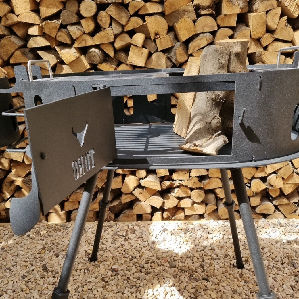 - Full Kit Package includes: (Grill, Stainless Steel grid, detachable side table, Stainless Steel Clamp Rack, Stainless Steel Griddle, Fire box, Fire tools set of 2)